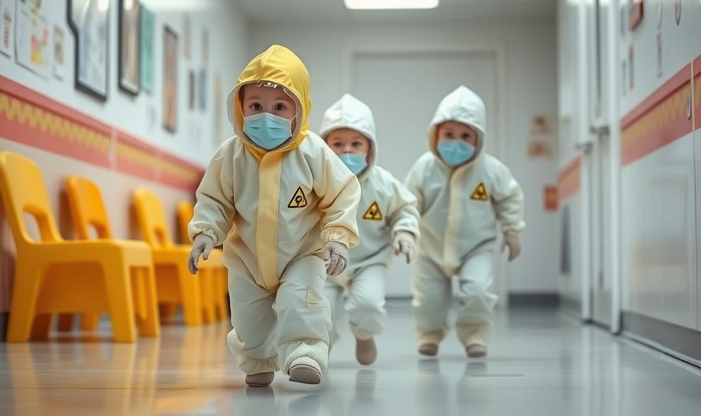 The reason for this is that all the kids have compromised immune systems. Unlike my daughter who has an immune system built like a brick shithouse, daycare kids are almost always vaccine maxed, pumped constantly full of toxic chemicals, and then eat toxic empty crap in the form of baby formula (which is also evil).